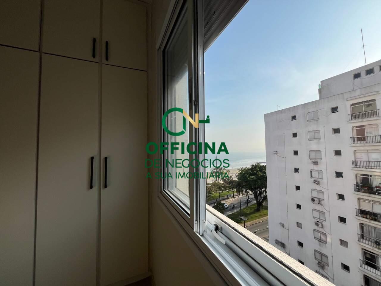 Apartamento para venda em Santos, localizado no bairro Embaré, em prédio frente à praia, com vista lateral para o mar, andar alto, 72 m2 de área útil, bem distribuídos.
