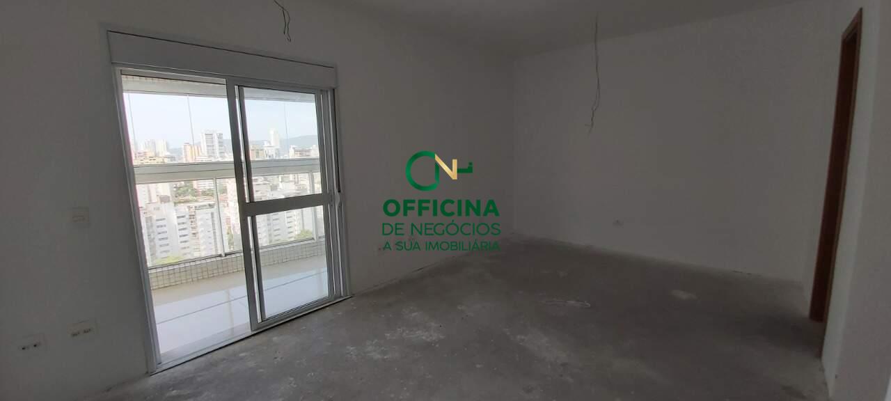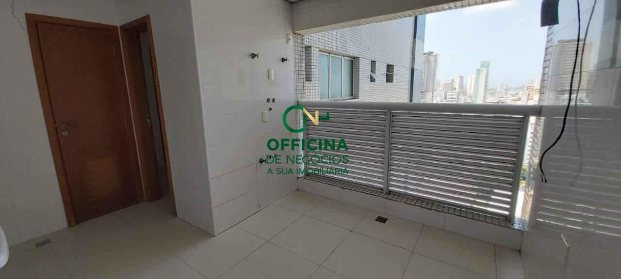 Meia quadra da praia da Aparecida, planta sensacional, com varanda gourmet super espaçosa, vista para o mar, sala para 3 ambientes, 4 suítes, sendo 2 americanas, uma master com closet. Cozinha ampla e dependência completa.