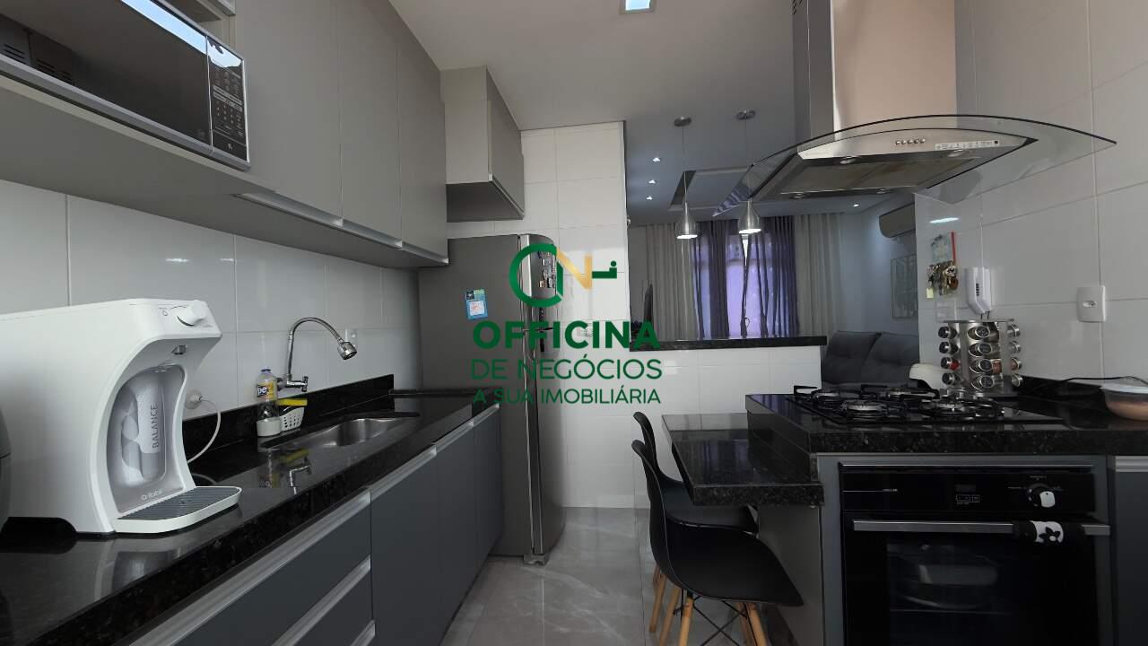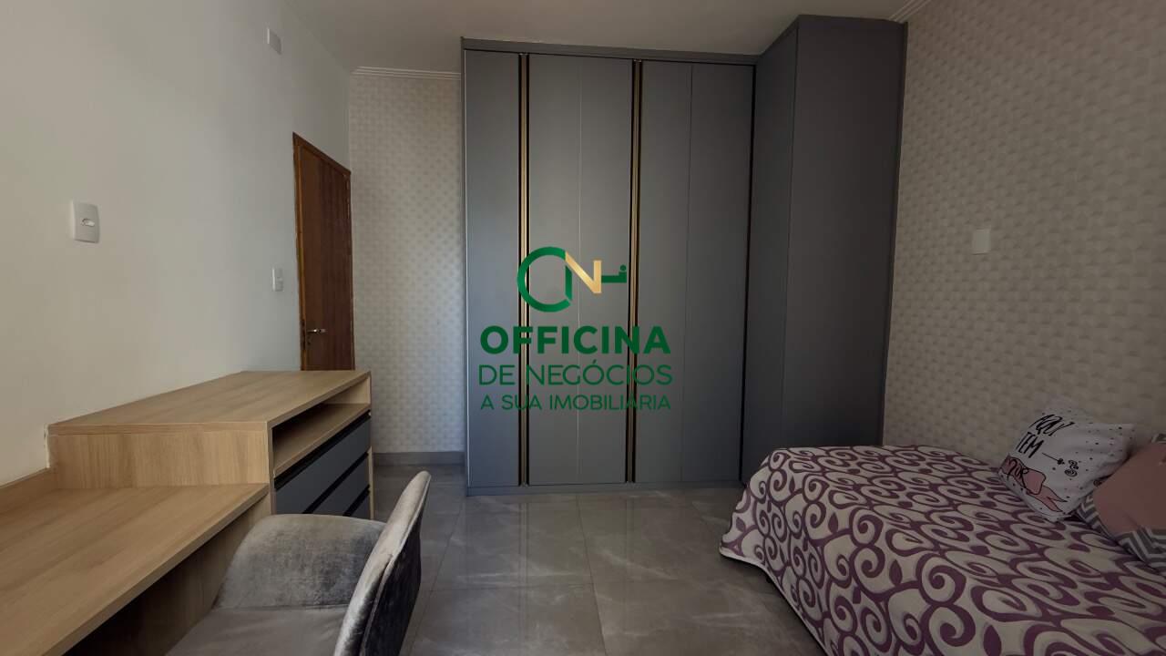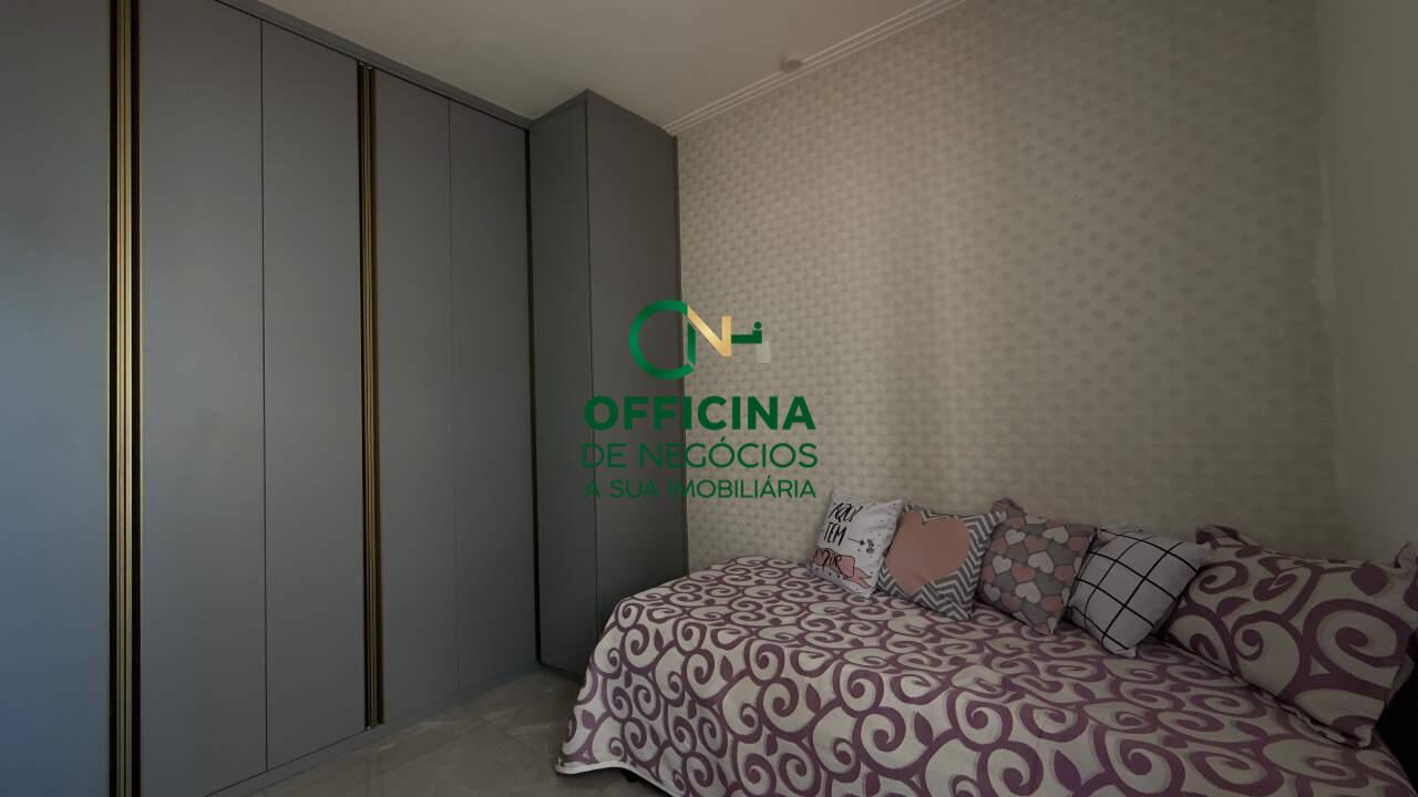 A sala possui piso porcelanato em toda a casa, porcelanato iluminado e iluminação embutida com spots e luminária pendentes na bancada. A parte elétrica é 100% nova, assim como a hidráulica, completa e feita. Com sancas de gesso, os quartos possuem armários planejados, bancada com cômoda embutida, espelho amplo até o teto, cabeceira de cama do mesmo material dos planejados e cortina persiana com rolo com listra para entrar claridade.